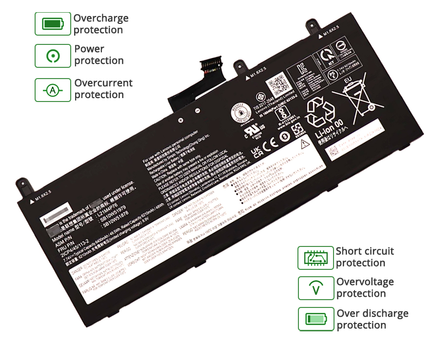 Our 4 cells 49.5Wh Lenovo 5B10W51878 battery is made in accordance with original battery specifications and is 100 percent compatible with your original battery. Lenovo 5B10W51878 replacement was certified according to international standards. You can buy with confidence!
