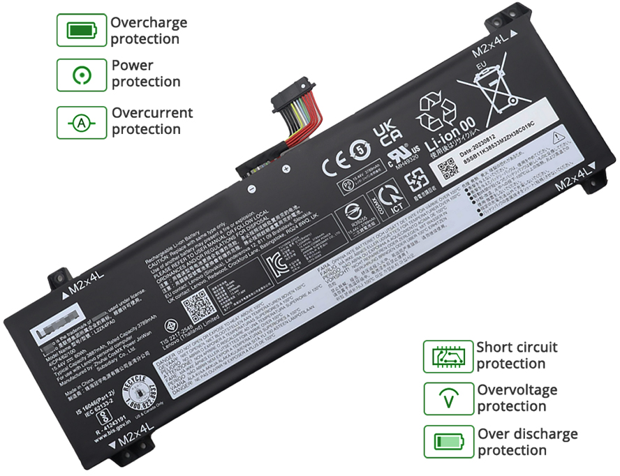 - Lenovo 5B11K38530 laptop batteries gets a little hot when it works, keep your laptop in a well ventilated place and keep it cool.