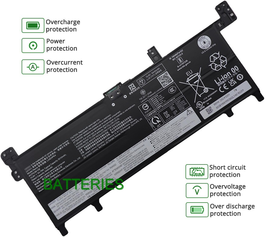 Our 4 cells 54.7Wh Lenovo IdeaPad Slim 5 13ARP10 Type 83J2 battery is made in accordance with original battery specifications and is 100 percent compatible with your original battery. Lenovo IdeaPad Slim 5 13ARP10 Type 83J2 replacement was certified according to international standards. You can buy with confidence!