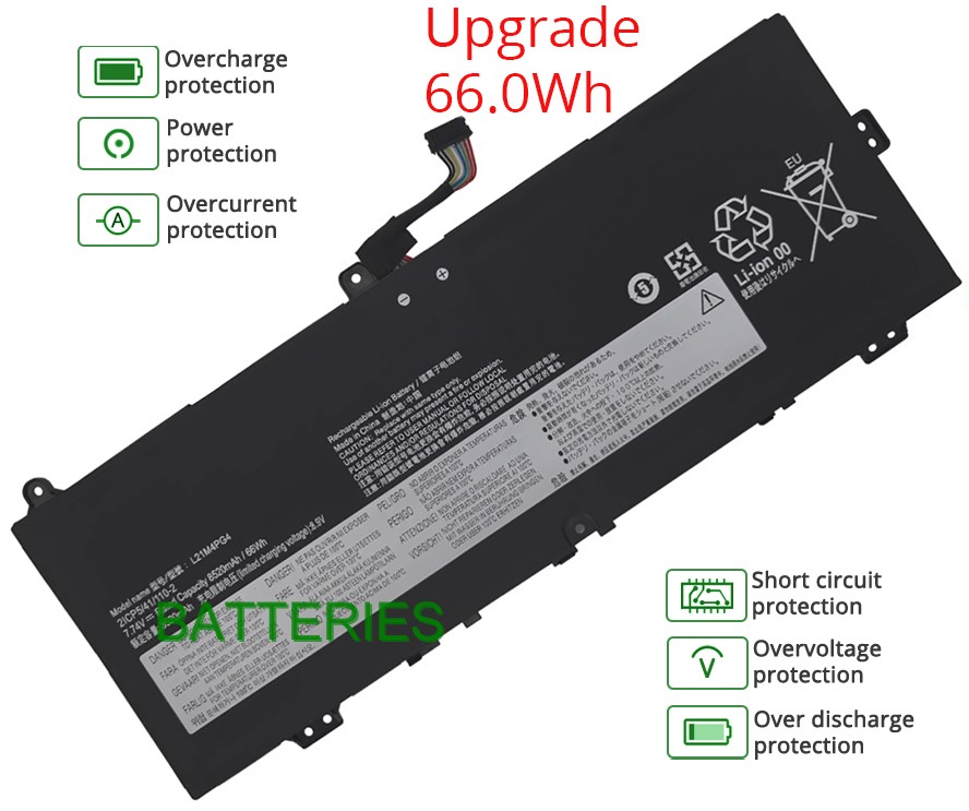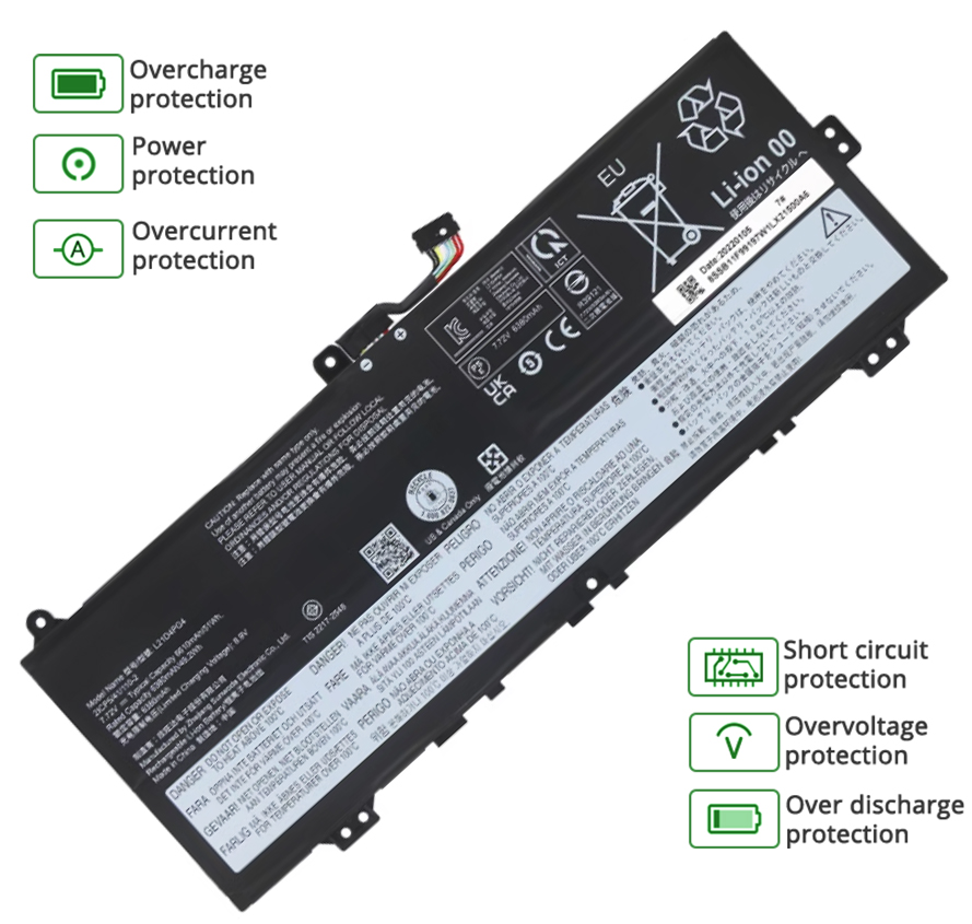 Our 4 cells 66Wh, 8520mAh LENOVO IP Flex 5 Chrome 14IAU7 Type 82T5 battery is made in accordance with original battery specifications and is 100 percent compatible with your original battery. LENOVO IP Flex 5 Chrome 14IAU7 Type 82T5 replacement was certified according to international standards. You can buy with confidence!