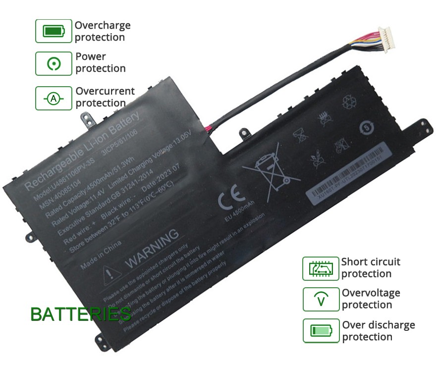 Our 3 cells 4500mAh MEDION U4861106PV-3S battery is made in accordance with original battery specifications and is 100 percent compatible with your original battery. MEDION U4861106PV-3S replacement was certified according to international standards. You can buy with confidence!