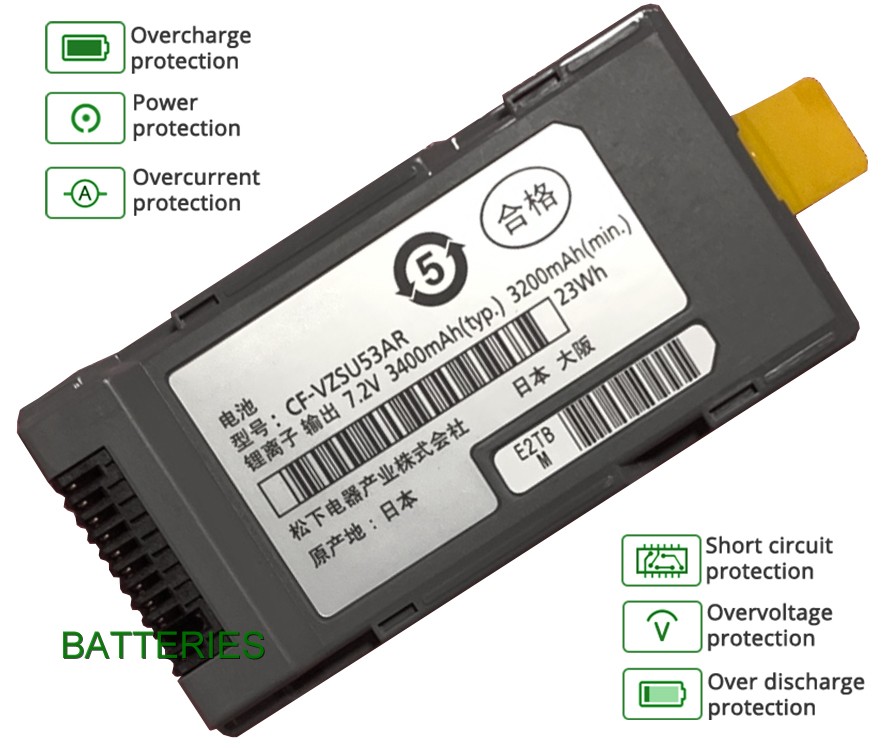 Our 2 cells 3400mAh PANASONIC CF-U1GQGTG2M battery is made in accordance with original battery specifications and is 100 percent compatible with your original battery. PANASONIC CF-U1GQGTG2M replacement was certified according to international standards. You can buy with confidence!